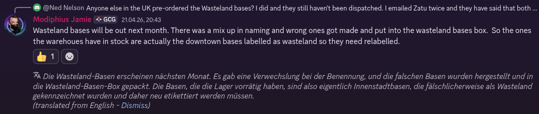 Chris Birch hat bereits auf der SPIEL’25 das Zeitfenster genannt. Jamie hat damals noch vehement widersprochen hat und inoffiziell, aber zu 100% das erste Halbjahr genannt. Schlecht gealtert, würde ich sagen. Lässt sich jetzt nur nicht mehr ändern. Heißt also warten. Doppelt ärgerlich: Meine Trappers habe ich zusammen mit den Super Mutanten gekauft.