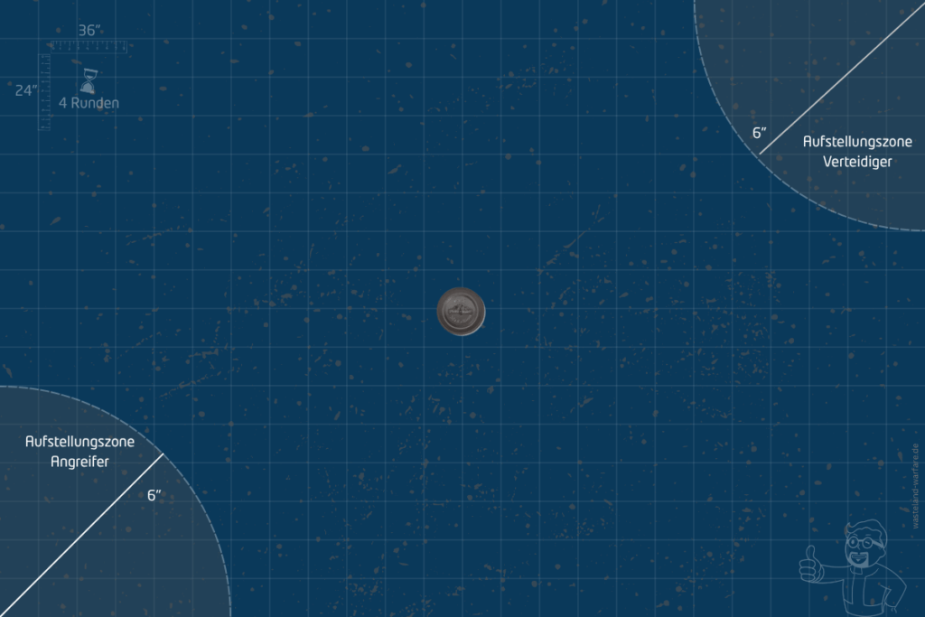 Nachdem die Aufstellungszonen festgelegt wurden, wird ein Zielmarker in der Mitte des Spielfelds platziert.
